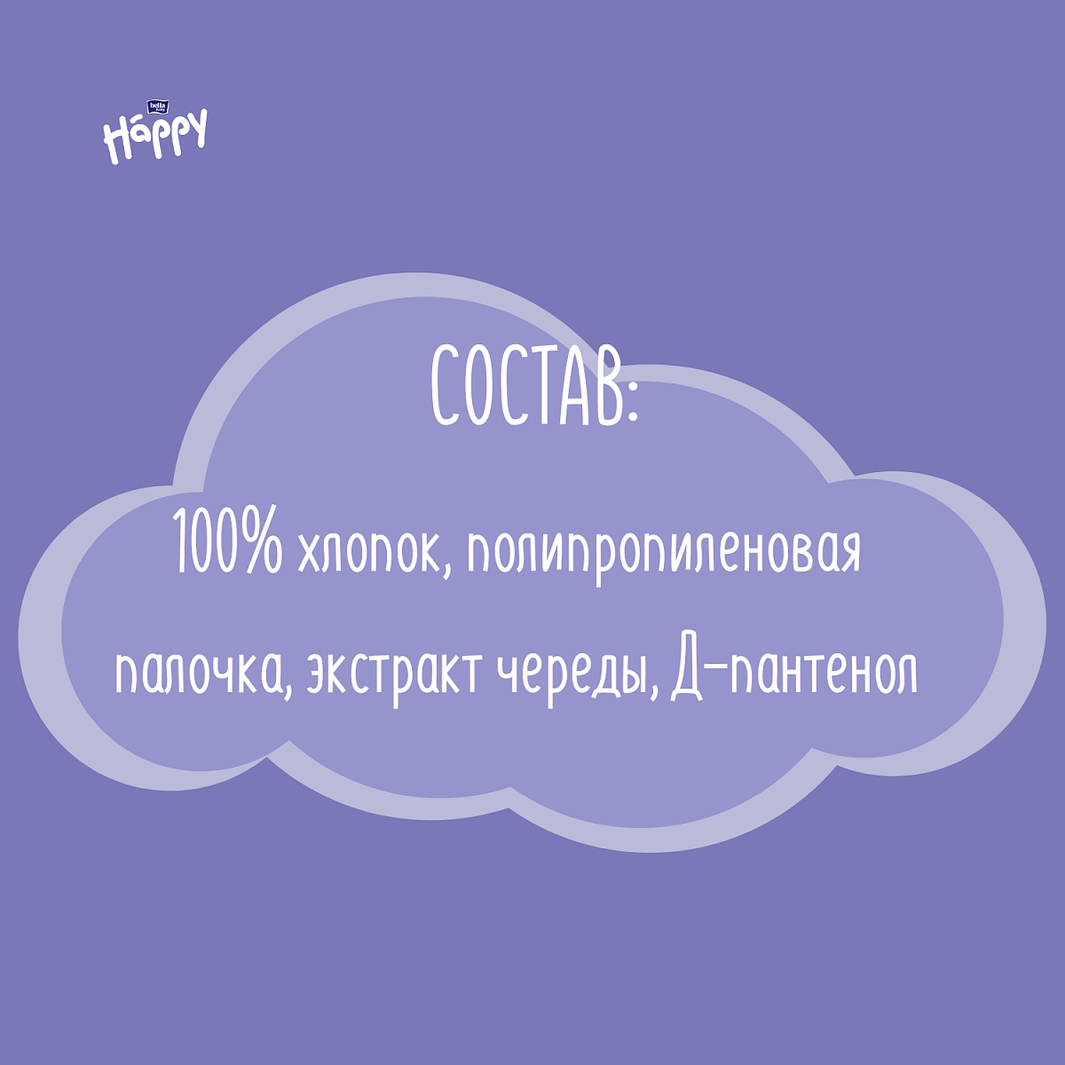 100% хлопок, экстракт череды, Д-пантенол