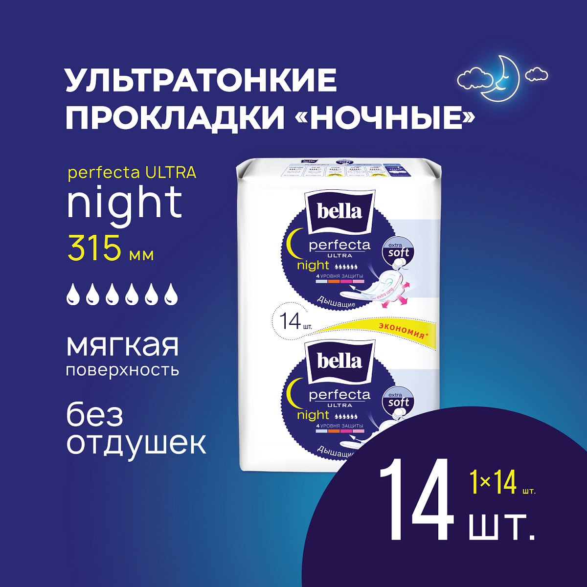 Ночные прокладки женские Bella Perfecta Night Extra Soft, 14 шт.