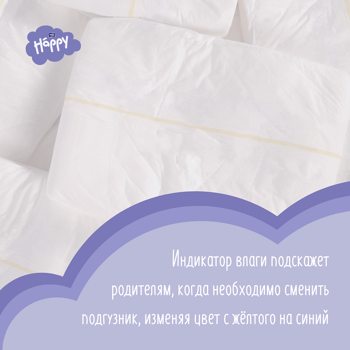 - Индикатор влаги подскажет родителям, когда необходимо сменить подгузник, изменяя цвет с жёлтого на зелёный.