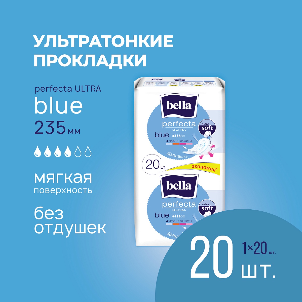 - Прокладки женские Bella Perfecta Ultra Blue, 20 шт.